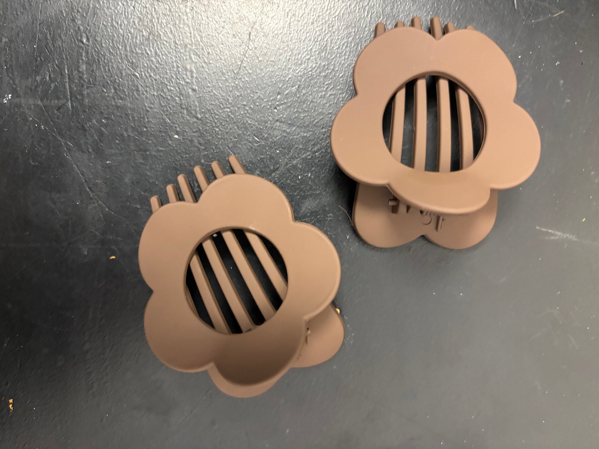 BROWN SMALL FLOWER HAIR CLIP FLAT LAY