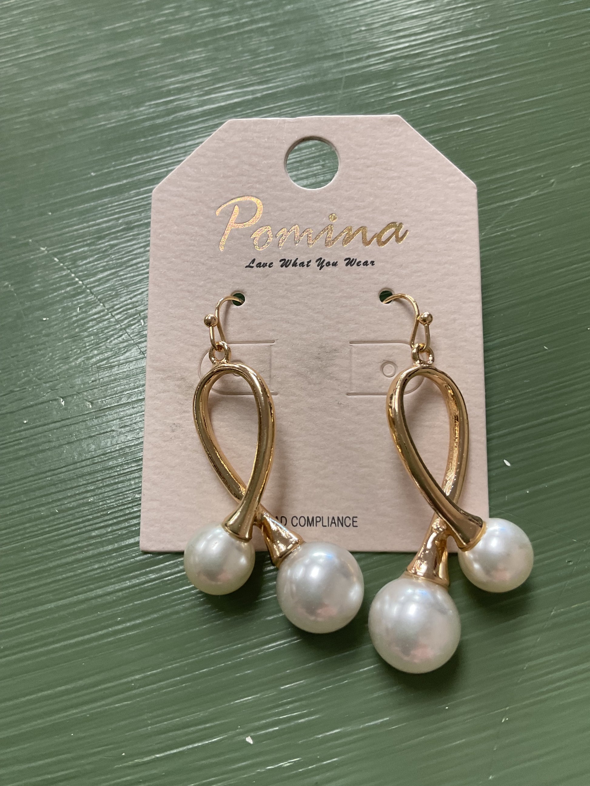 GOLD DANGLE EARRINGS LOOP WITH TWO PEARLS
