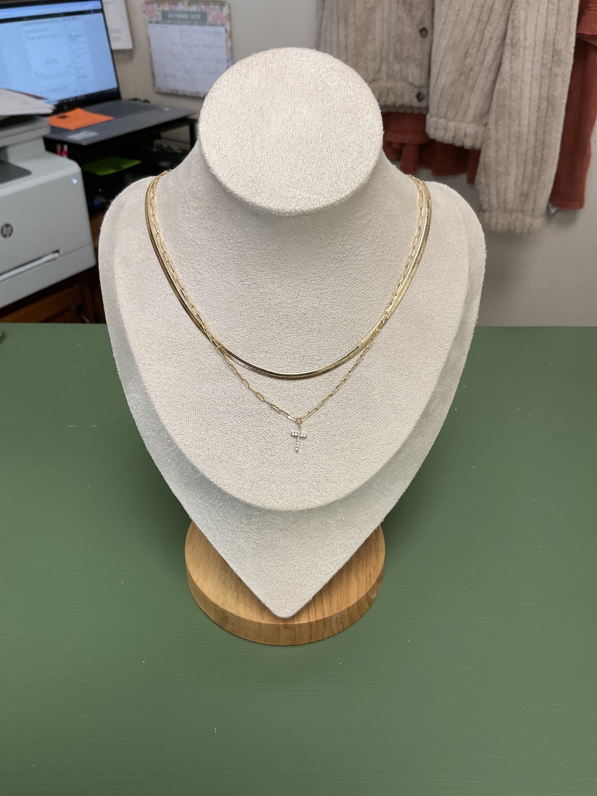GOLD SNAKE CHAIN NECKLACE WITH CRYSTAL CROSS