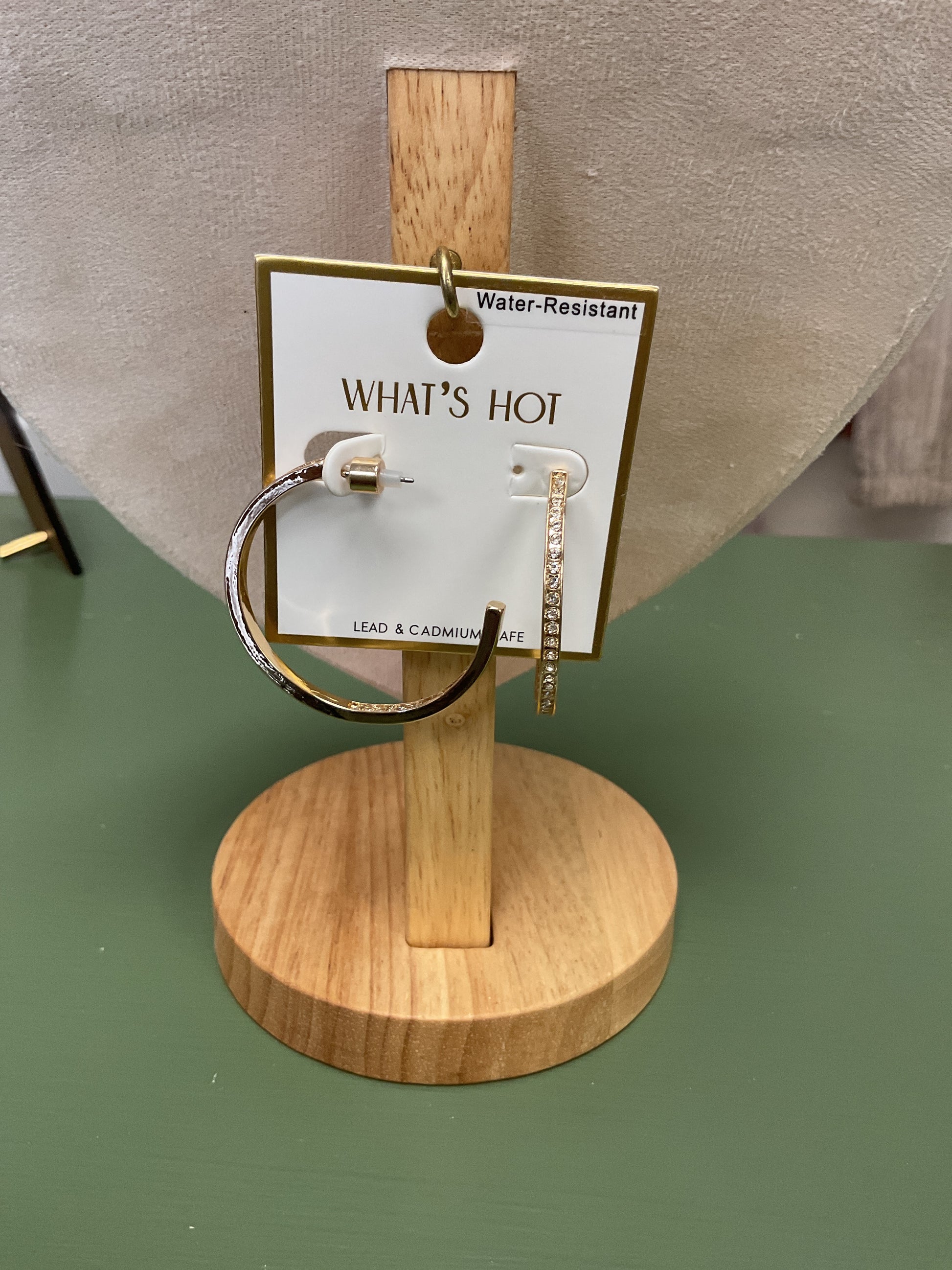 WATER RESISTANT GOLD RHINESTONED FRONT BACK PAVE HOOP EARRINGS