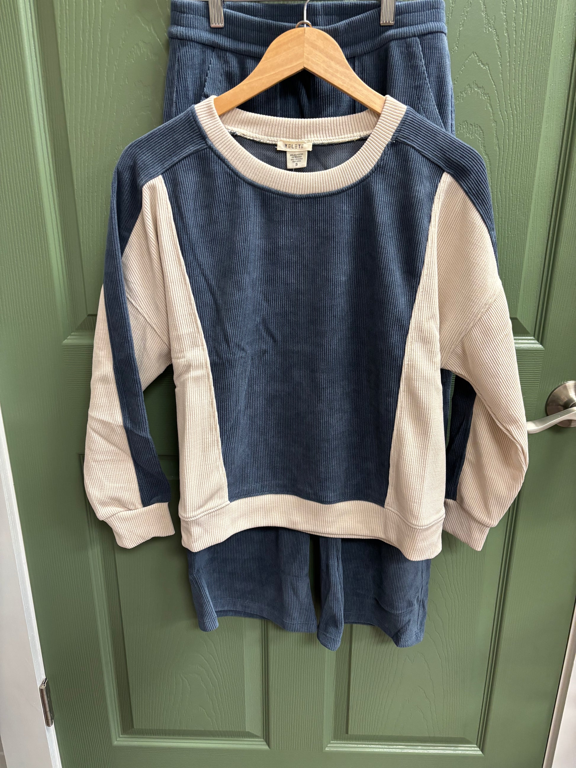 YELETE CORDUROY BLUE AND CREAM SET